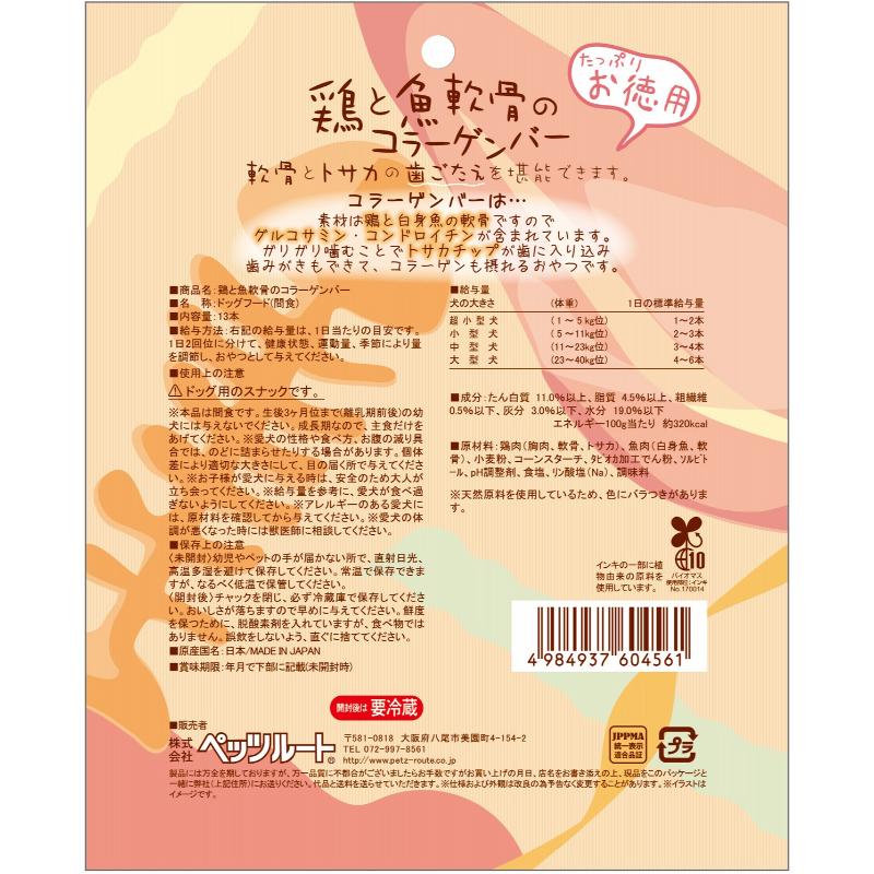 [ペッツルート]鶏と魚軟骨のコラーゲンバー 13本入り【メーカーフェア10】