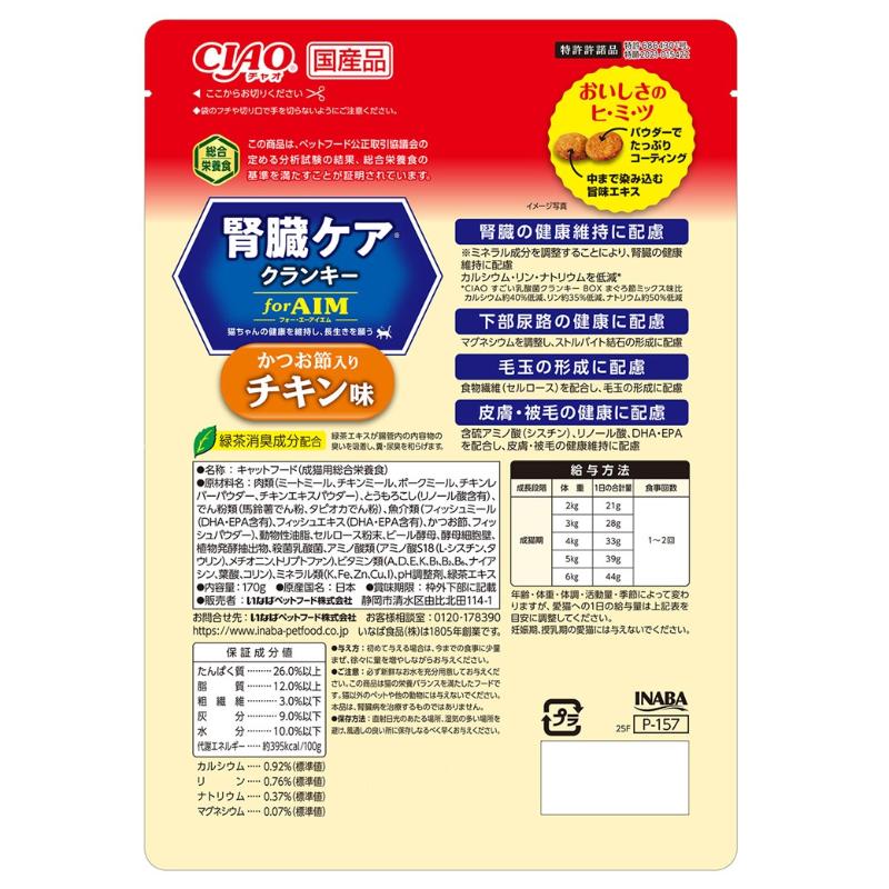 [いなばペットフード]CIAO 腎臓ケアクランキー かつお節入り チキン味 170g