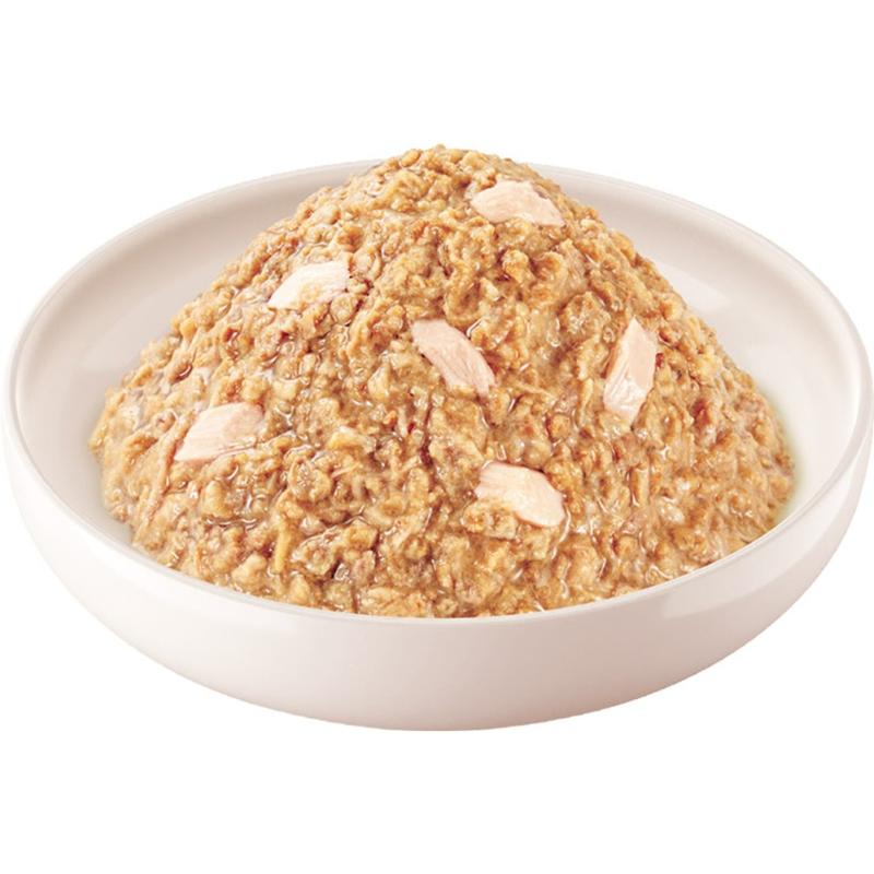 素材 | <原材料> 魚介類(まぐろ(まぐろ白身を含む)、かつお、まぐろエキス)、糖類(オリゴ糖等)、植物性油脂、増粘多糖類、ミネラル類(Na、P、Cl)、調味料(アミノ酸)、ビタミンE、紅麹色素、緑茶エキス <保証成分> たんぱく質9.5%以上、脂質0.8%以上、粗繊維0.1%以下、灰分1.6%以下、水分88.0%以下 <エネルギー> 約21kcal/袋 |
