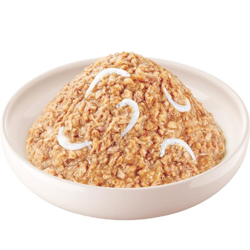 素材 | <原材料> 魚介類(まぐろ、かつお、しらす、かつお節エキス)、糖類(オリゴ糖等)、植物性油脂、増粘多糖類、ミネラル類(Na、P、Cl)、調味料(アミノ酸)、ビタミンE、紅麹色素、緑茶エキス <保証成分> たんぱく質9.5%以上、脂質0.8%以上、粗繊維0.1%以下、灰分1.6%以下、水分88.0%以下 <エネルギー> 約21kcal/袋 |