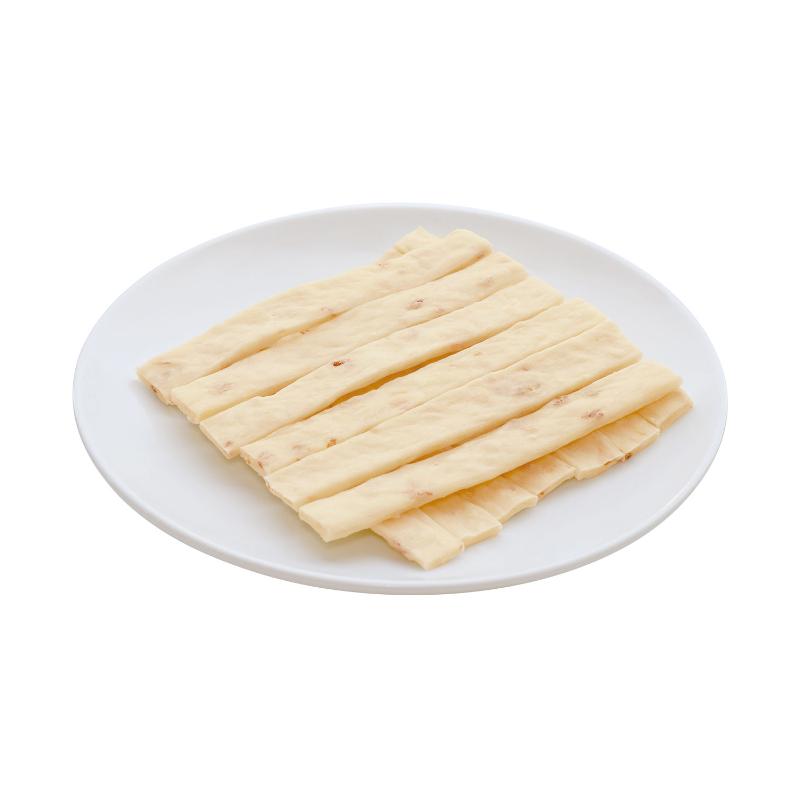 素材 | <原材料> 牛皮、鶏ササミ、たん白加水分解物、加工でんぷん <保証成分> たん白質63.5%以上、脂質0.1%以上、粗繊維0.5%以下、灰分3.0%以下、水分20.0%以下 <エネルギー> 327kcal/100g |