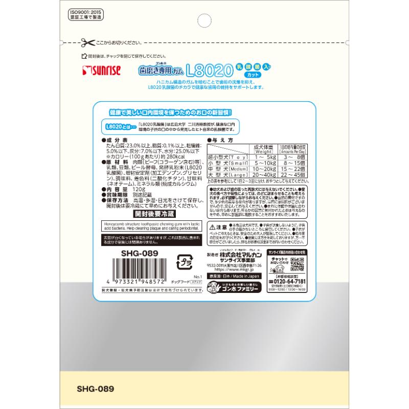 [マルカン サンライズ]ゴン太の歯磨き専用ガム L8020乳酸菌入り カット 120g