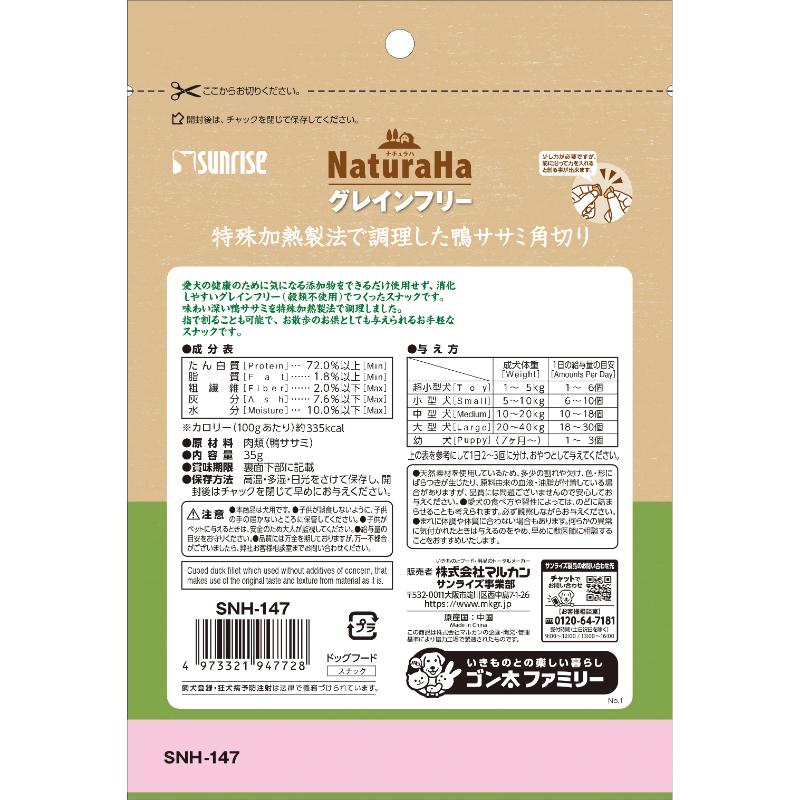 [マルカン サンライズ]ナチュラハ グレインフリー 特殊加熱製法で調理した鴨ササミ角切り 35g