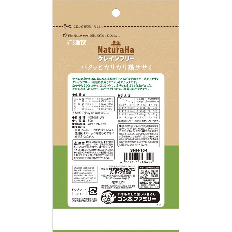 [マルカン サンライズ]ナチュラハ グレインフリー パクッとカリカリ鶏ササミ 50g