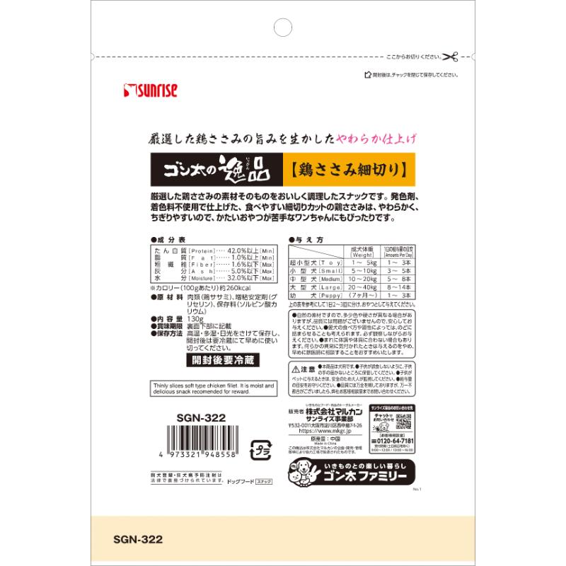 [マルカン サンライズ]ゴン太の逸品 鶏ささみ細切り 130g