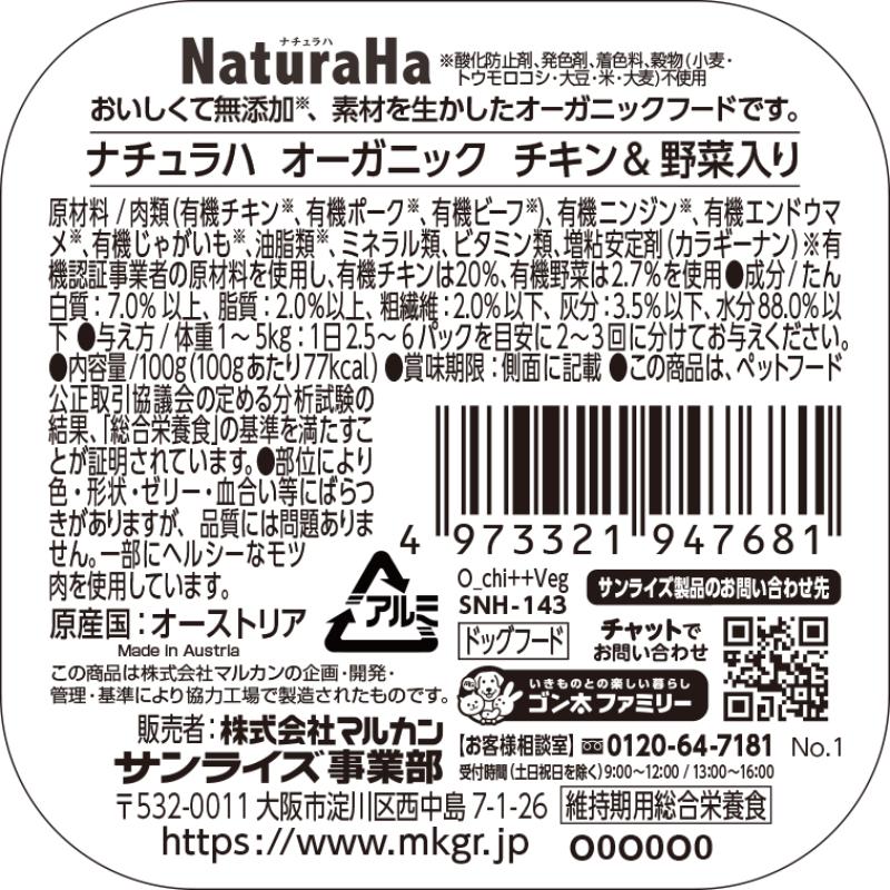 [マルカン サンライズ]ナチュラハ オーガニック チキン&野菜入り 100g