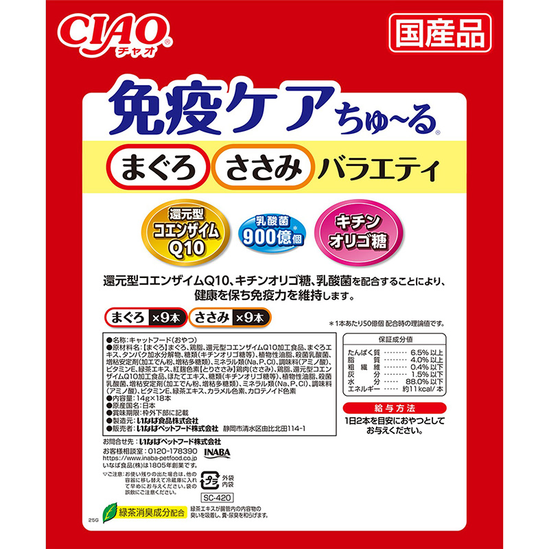 [いなばペットフード]CIAO 免疫ケアちゅ~る まぐろ・とりささみバラエティ 14g×18本