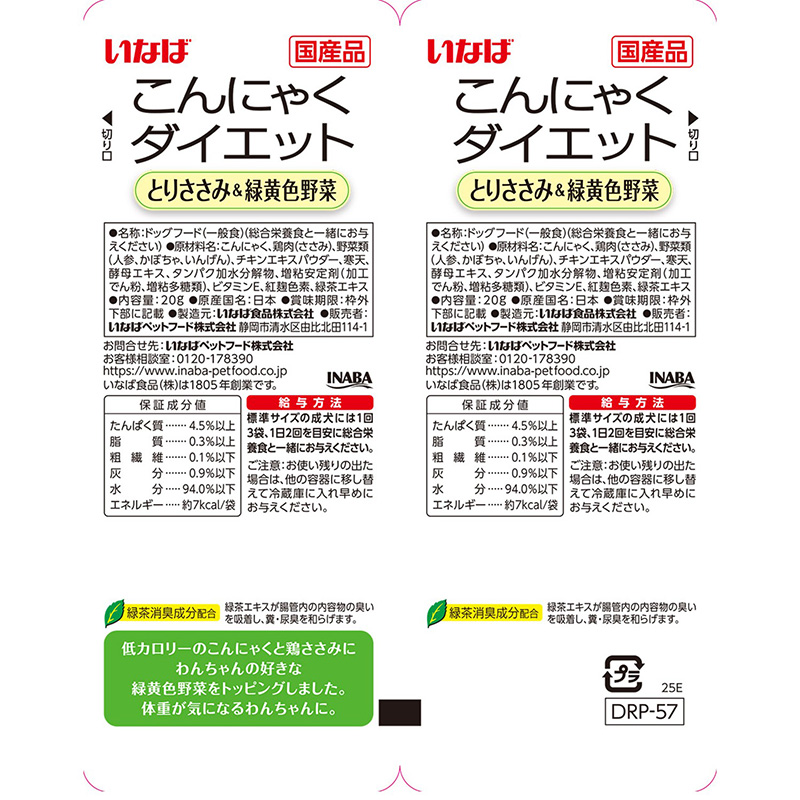 [いなばペットフード]こんにゃくダイエットツインズ とりささみ&緑黄色野菜 20g×2袋