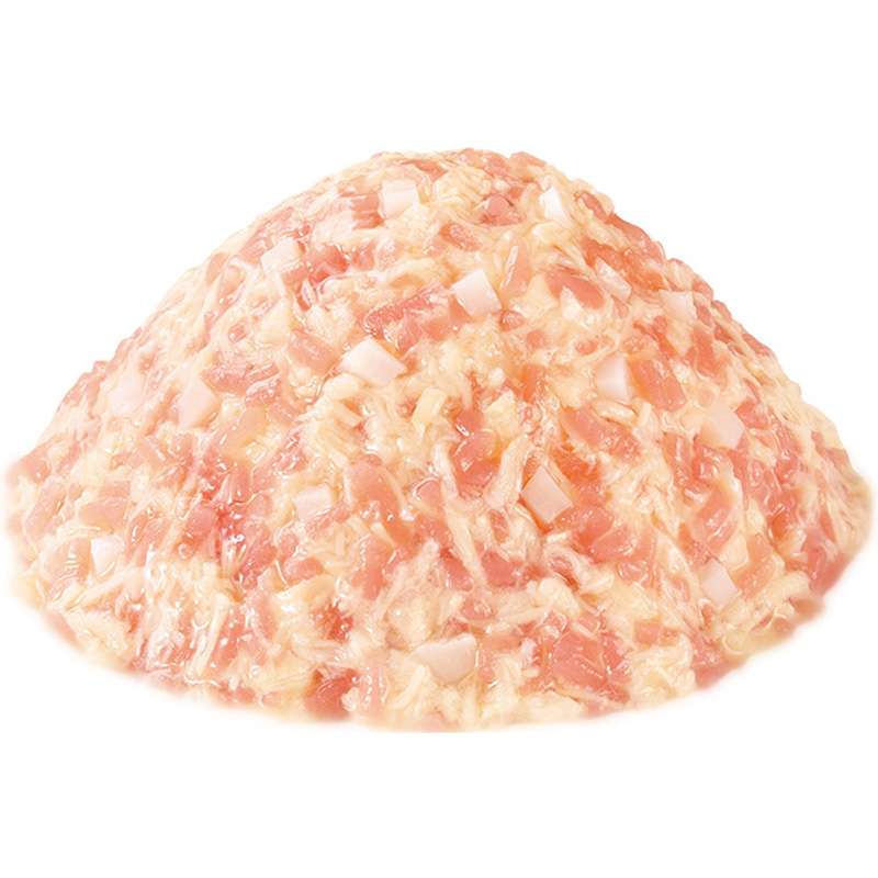| 素材 | <原材料> こんにゃく、鶏肉(ささみ)、鶏軟骨、チキンエキスパウダー、寒天、酵母エキス、タンパク加水分解物、増粘安定剤(加工でん粉、増粘多糖類)、ビタミンE、紅麹色素、緑茶エキス <保証成分> たんぱく質4.5%以上、脂質0.3%以上、粗繊維0.1%以下、灰分0.9%以下、水分94.0%以下 <エネルギー> 約7kcal/袋 |
