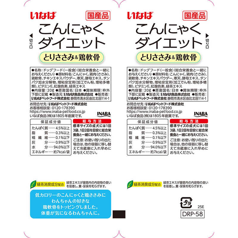 [いなばペットフード]こんにゃくダイエットツインズ とりささみ&鶏軟骨 20g×2袋