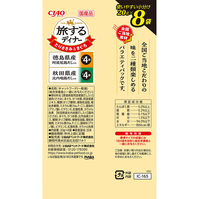 [いなばペットフード]CIAO 旅するディナー徳島県産阿波尾鶏だし入り・秋田県産比内地鶏だし入り20g×8袋