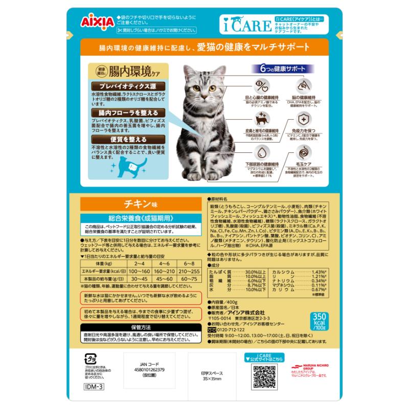 [アイシア]i CARE キャットドライ 成猫用 チキン味 400g