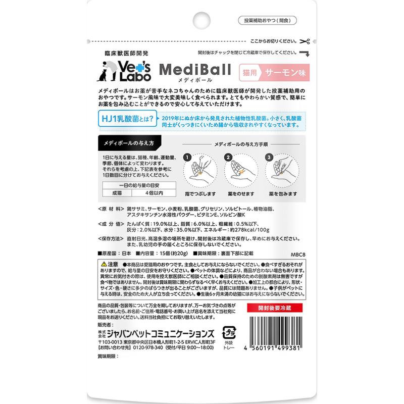 [ジャパンペットコミュニケーションズ]Vet'S Labo メディボール 猫用 サーモン味 15個入