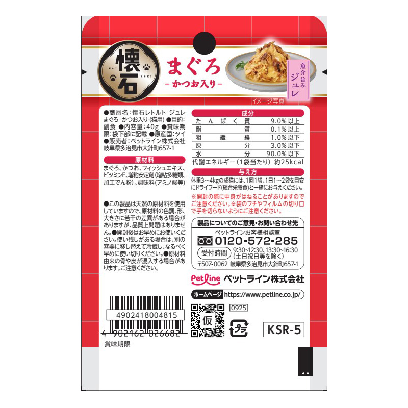 [ペットライン]懐石レトルト 魚介旨みジュレ まぐろ かつお入り 40g