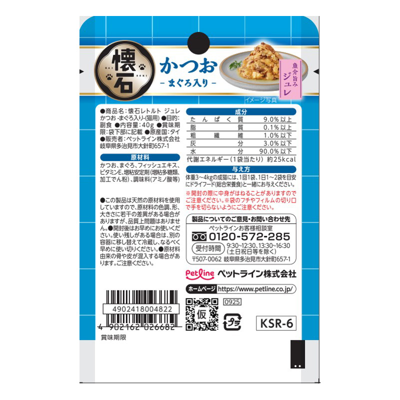 [ペットライン]懐石レトルト 魚介旨みジュレ かつお まぐろ入り 40g
