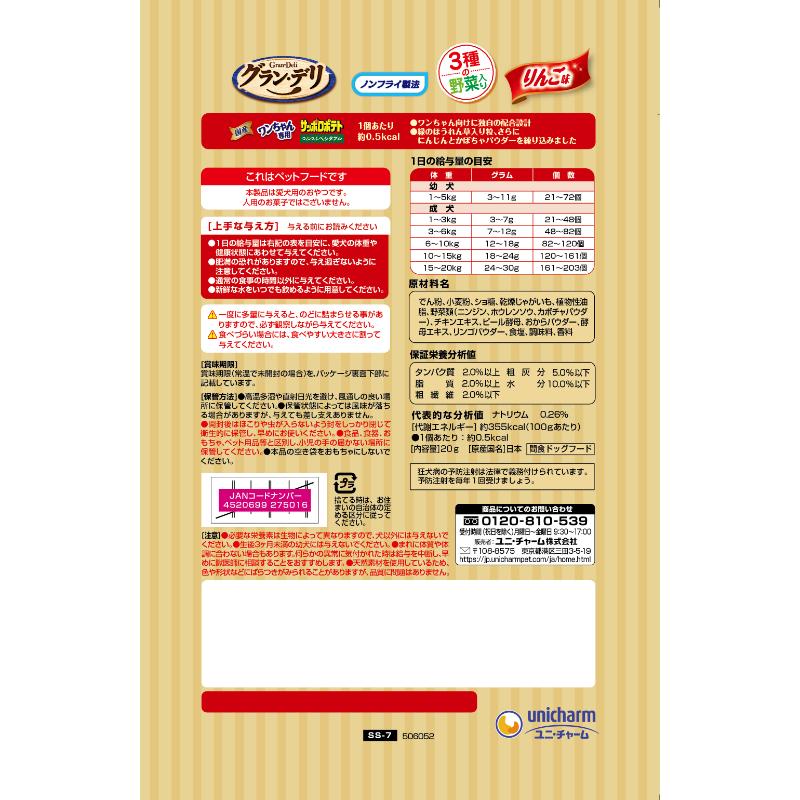 [ユニ・チャーム]グラン・デリ ワンちゃん専用サッポロポテト つぶつぶベジタブル りんご味 20g【決算セール】