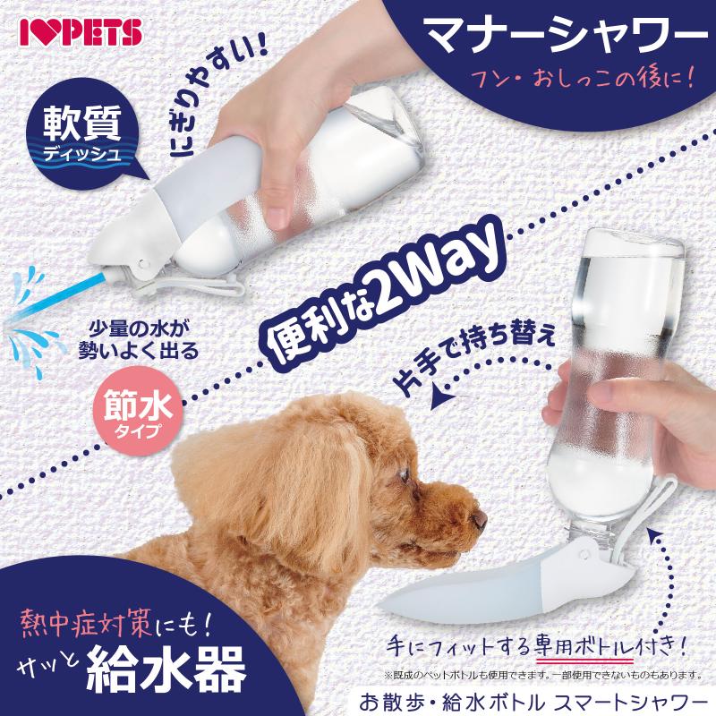 ・愛犬のお散歩に便利なマナーシャワーにもなる2way給水マナーボトル。屋外での熱中症対策・水分補給に!