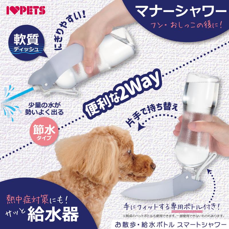 ・愛犬のお散歩に便利なマナーシャワーにもなる2way給水マナーボトル。屋外での熱中症対策・水分補給に!