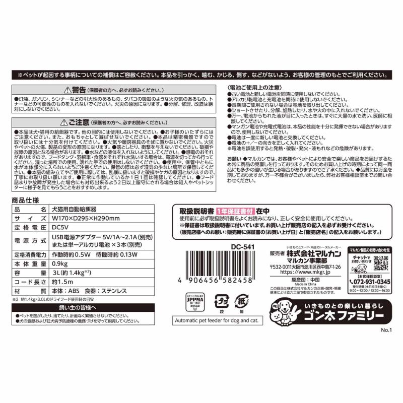 ・給餌量、給餌時間をらくらく設定できる、ドライフード専用自動給餌器です。