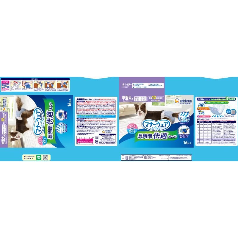 [ユニ・チャーム]マナーウェア 長時間快適オムツ 男女共用 中型犬用 16枚入