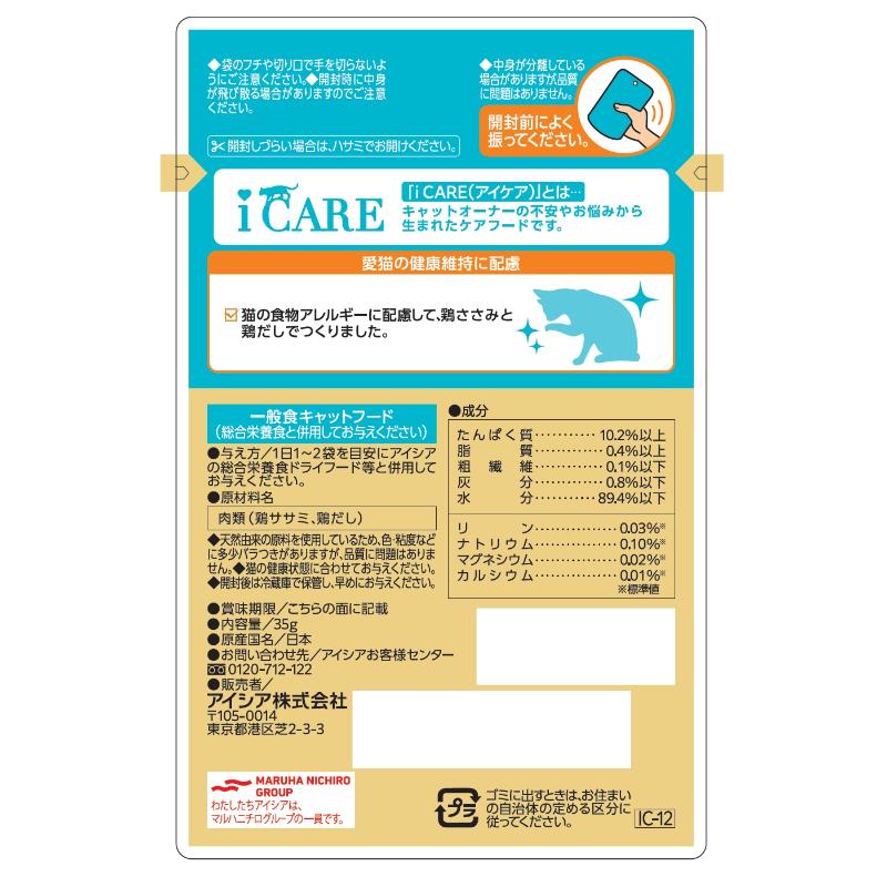 [アイシア]i CARE 食物アレルギーケア ささみスープ 35g