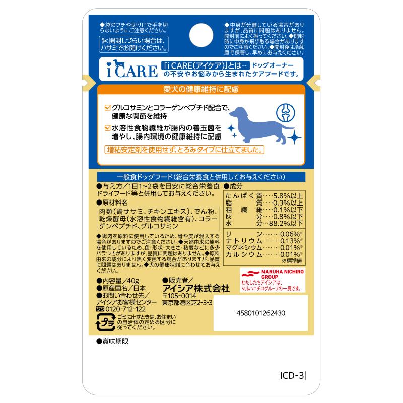 [アイシア]i CARE ドッグ 関節ケア ささみ とろみタイプ 40g