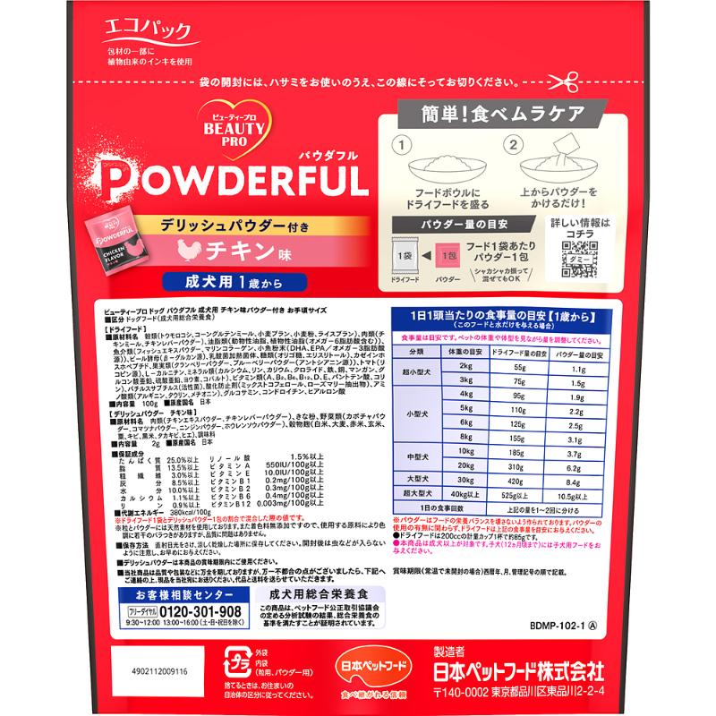 [日本ペットフード]ビューティープロ ドッグ パウダフル 成犬用 チキン味パウダー付き お手頃サイズ