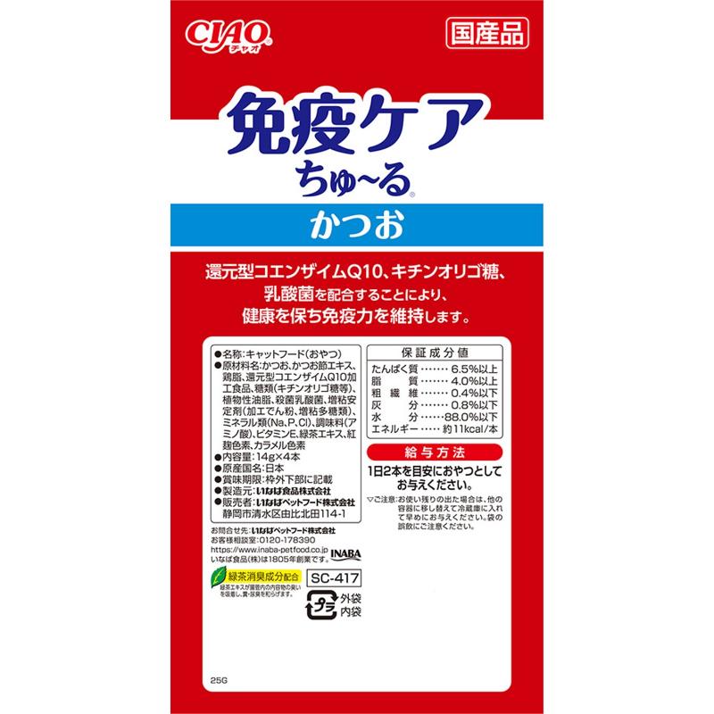 [いなばペットフード]CIAO 免疫ケアちゅ~る かつお 14g×4本