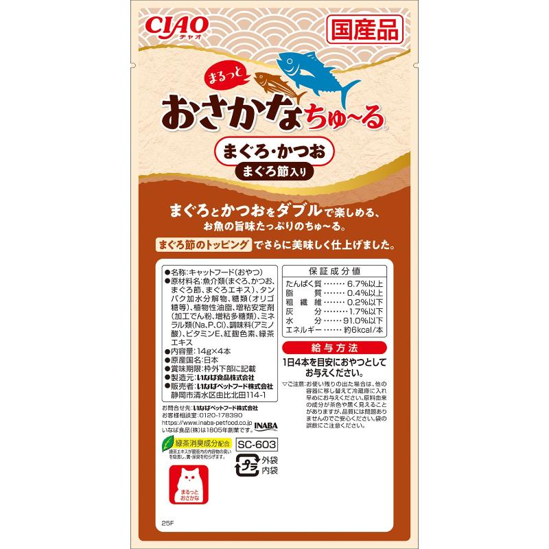 [いなばペットフード]CIAO まるっとおさかなちゅ~る まぐろ・かつお まぐろ節入り 14g×4本