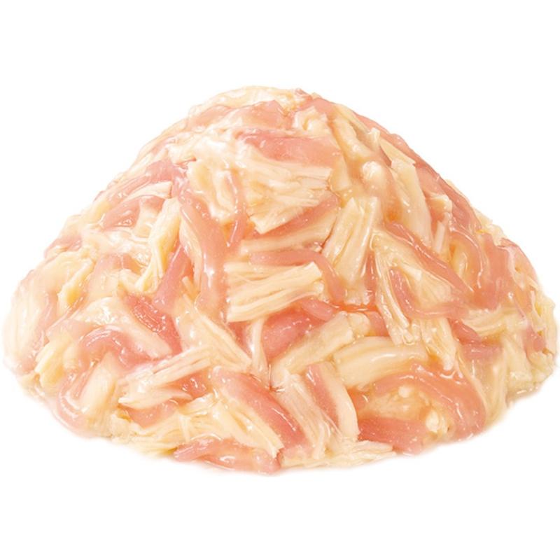 素材 | <原材料> こんにゃく、鶏肉(ささみ)、チキンエキスパウダー、寒天、酵母エキス、タンパク加水分解物、増粘安定剤(加工でん粉、増粘多糖類)、ビタミンE、紅麹色素、緑茶エキス <保証成分> たんぱく質4.5%以上、脂質0.3%以上、粗繊維0.1%以下、灰分0.9%以下、水分94.0%以下 <エネルギー> 約21kcal/袋 |