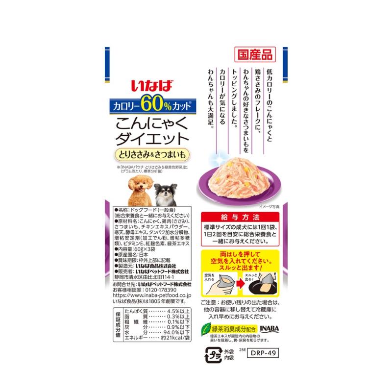[いなばペットフード]いなば こんにゃくダイエット とりささみ&さつまいも 60g×3袋