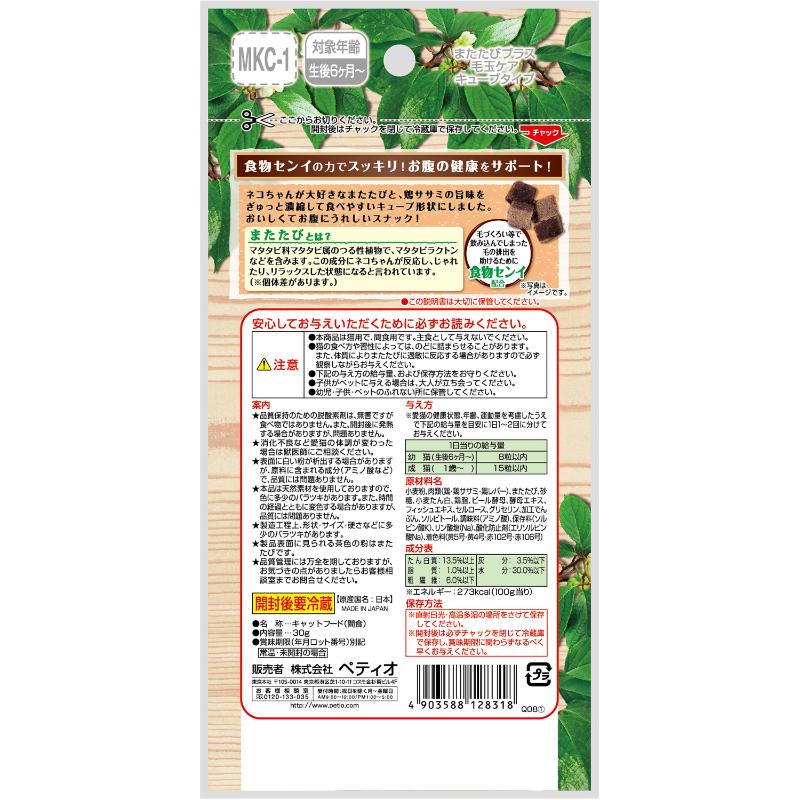 [ペティオ(直送)]またたびプラス 毛玉ケア キューブタイプ ササミ 30g ※メーカー直送 ※発注単位・最低発注数量(納価合計:税抜7万円以上)にご注意下さい