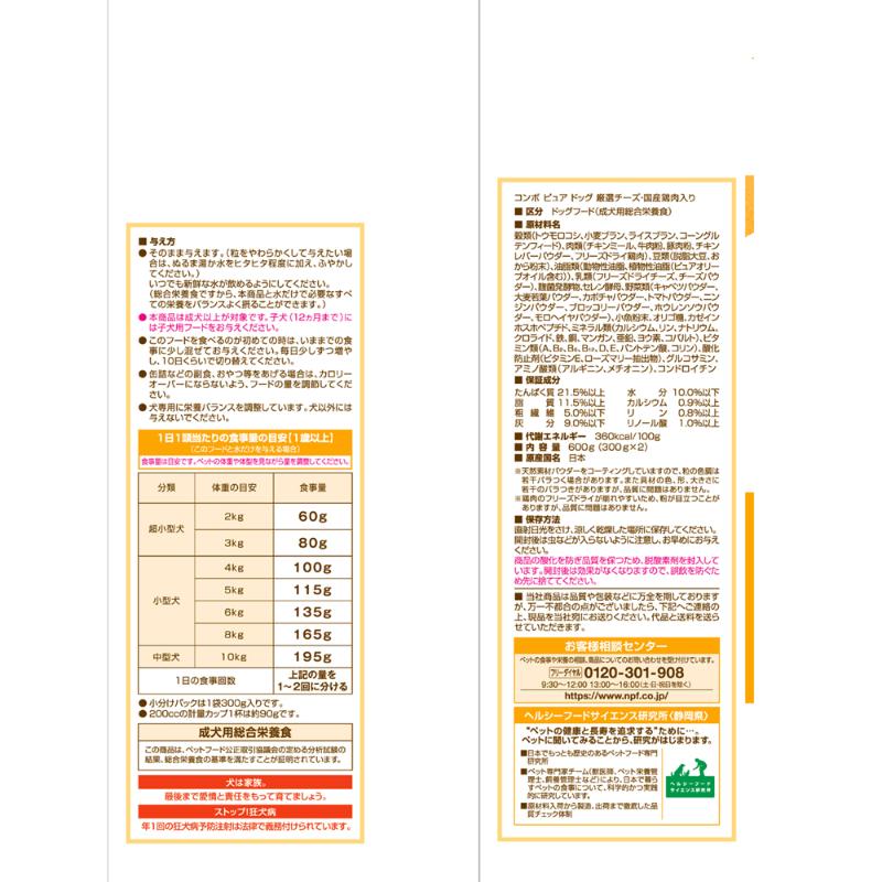 [日本ペットフード(直送)]コンボ ピュア ドッグ 厳選チーズ・国産鶏肉入り600g ※メーカー直送 ※発注単位・最低発注数量(混載30ケース以上)にご注意下さい
