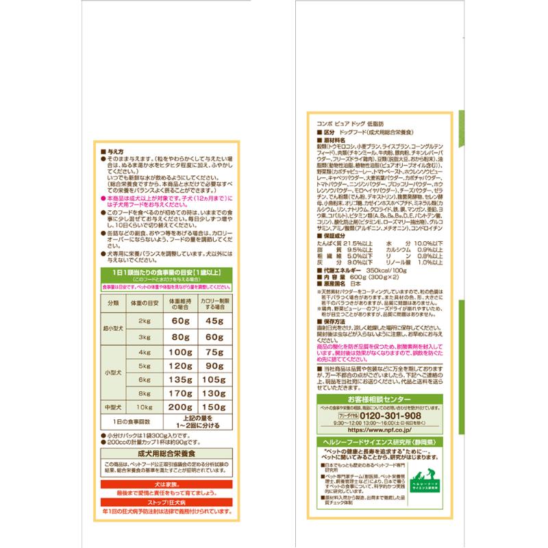 [日本ペットフード(直送)]コンボ ピュア ドッグ 低脂肪600g ※メーカー直送 ※発注単位・最低発注数量(混載30ケース以上)にご注意下さい