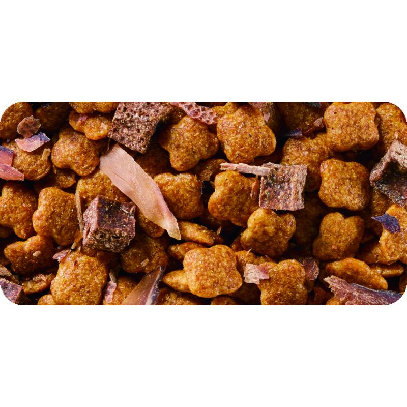 愛猫が大好きな風味豊かなかつお節をトッピング。おいしさそのままで体にやさしい減塩タイプを使用。