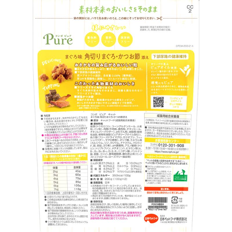 [日本ペットフード(直送)]コンボ ピュア キャット まぐろ味・角切りまぐろ・かつお節添え 200g(100g×2袋) ※メーカー直送 ※発注単位・最低発注数量(混載30ケース以上)にご注意下さい