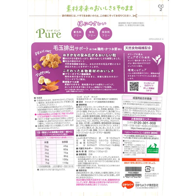 [日本ペットフード(直送)]コンボ ピュア キャット 毛玉排出サポート まぐろ味・鶏肉・かつお節添え 200g(100g×2袋) ※メーカー直送 ※発注単位・最低発注数量(混載30ケース以上)にご注意下さい