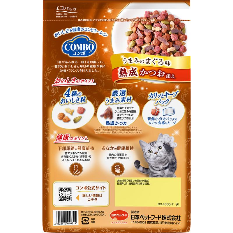 [日本ペットフード(直送)]コンボ キャット まぐろ味・熟成かつお添え 600g(120g×5袋) ※メーカー直送 ※発注単位・最低発注数量(混載30ケース以上)にご注意下さい
