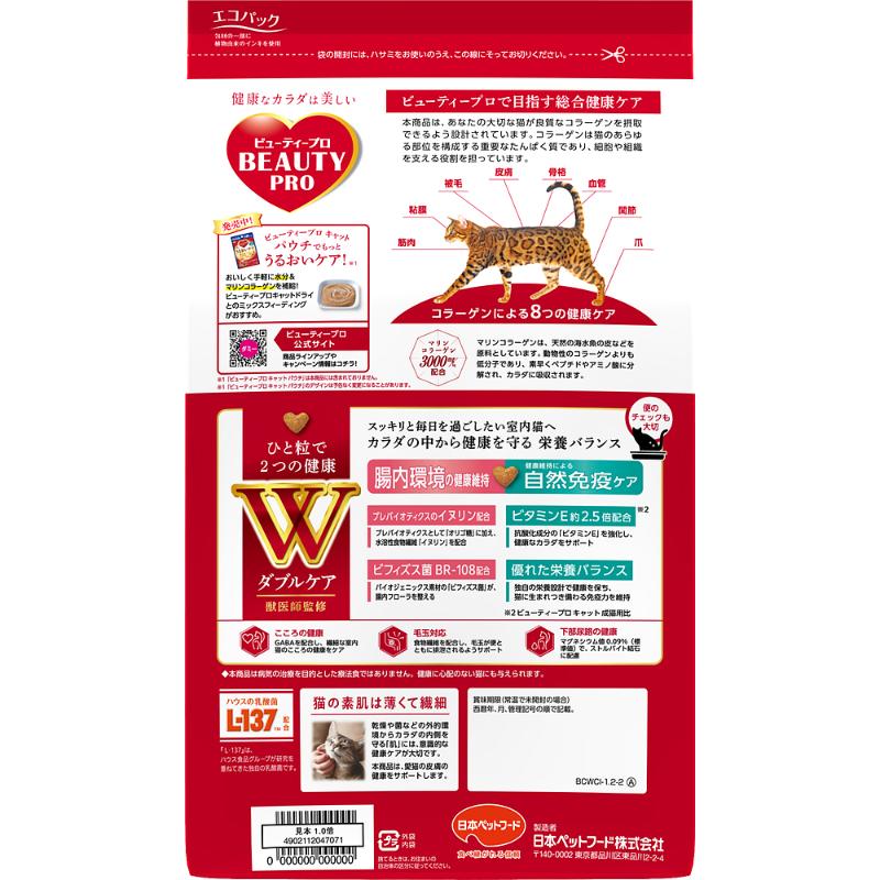 [日本ペットフード(直送)]ビューティープロ キャット Wケア 腸内・自然免疫ケア1.2kg ※メーカー直送 ※発注単位・最低発注数量(混載30ケース以上)にご注意下さい