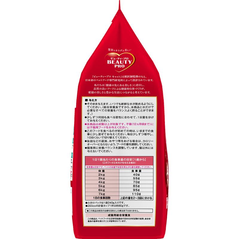 | 注意事項 | ・本商品は成猫以上が対象です。子猫(12カ月頃まで)には子猫用フードをお与えください。 ・猫専用に栄養バランスを調整しています。猫以外には与えないでください。 |