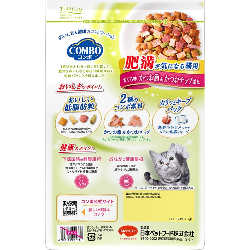[日本ペットフード(直送)]コンボ キャット 肥満が気になる猫用 まぐろ味・かつお節・かつおチップ添え600g(120g×5袋) ※メーカー直送 ※発注単位・最低発注数量(混載30ケース以上)にご注意下さい