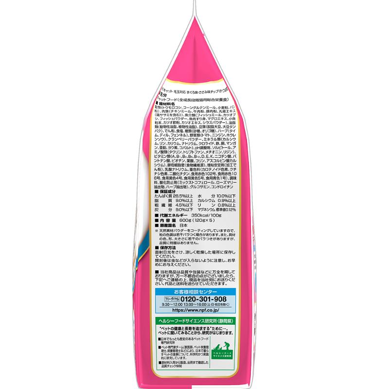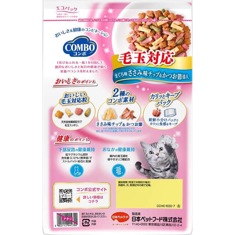 [日本ペットフード(直送)]コンボ キャット 毛玉対応 まぐろ味・ささみチップ・かつお節添え600g(120g×5袋) ※メーカー直送 ※発注単位・最低発注数量(混載30ケース以上)にご注意下さい