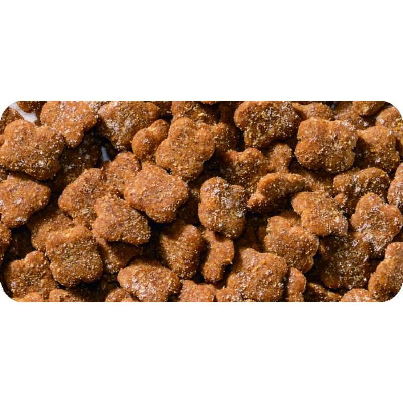 | 素材 | <原材料> 穀類(トウモロコシ、コーングルテンミール、小麦粉、パン粉)、肉類(牛肉粉、豚肉粉、チキンミール、チキンレバーパウダー)、α化でん粉、油脂類(動物性油脂、植物性油脂(ピュアオリーブオイル含む))、魚介類(フィッシュパウダー、マグロ節粉)、チーズパウダー、オリゴ糖、ミネラル類(カルシウム、リン、カリウム、ナトリウム、クロライド、銅、亜鉛、ヨウ素)、pH調整剤、アミノ酸類(タウリン、トリプトファン、メチオニン)、ビタミン類(A、B1、B2、B6、B12、D、E、K、ニコチン酸、パントテン酸、葉酸、コリン)、酵母細胞壁、酸化防止剤(ミックストコフェロール、ローズマリー抽出物) <保証成分> たんぱく質27.0%以上、脂質9.0%以上、粗繊維4.5%以下、灰分9.0%以下、水分10.0%以下、カルシウム0.9%以上、リン0.7%以上、マグネシウム0.08%(標準値) <エネルギー> 350kcal/100g |