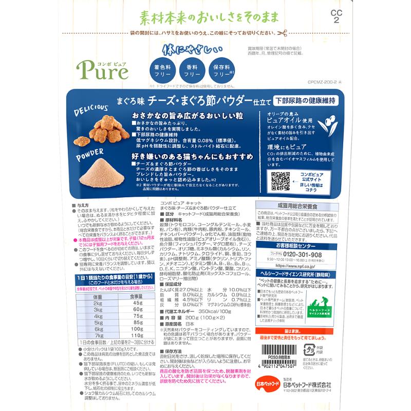 [日本ペットフード(直送)]コンボ ピュア キャット まぐろ味・チーズ&まぐろ節パウダー仕立て 200g(100g×2袋) ※メーカー直送 ※発注単位・最低発注数量(混載30ケース以上)にご注意下さい