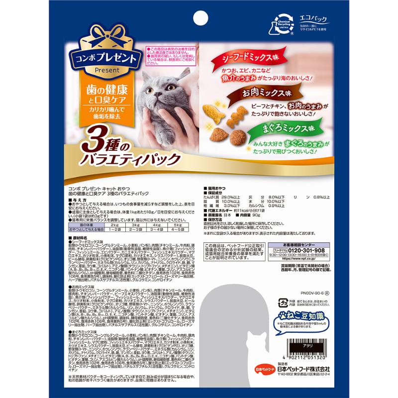 [日本ペットフード(直送)]コンボ プレゼント キャット おやつ 歯の健康と口臭ケア 3種のバラエティパック 90g ※メーカー直送 ※発注単位・最低発注数量(混載30ケース以上)にご注意下さい