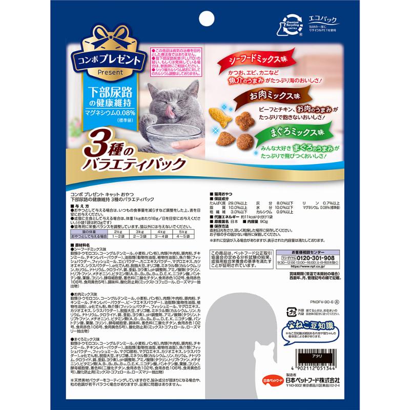 [日本ペットフード(直送)]コンボ プレゼント キャット おやつ 下部尿路の健康維持 3種のバラエティパック 90g ※メーカー直送 ※発注単位・最低発注数量(混載30ケース以上)にご注意下さい