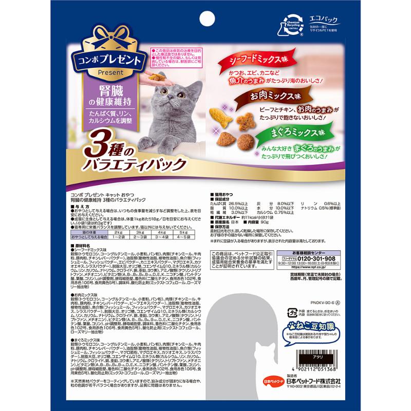 [日本ペットフード(直送)]コンボ プレゼント キャット おやつ 腎臓の健康維持 3種のバラエティパック 90g ※メーカー直送 ※発注単位・最低発注数量(混載30ケース以上)にご注意下さい