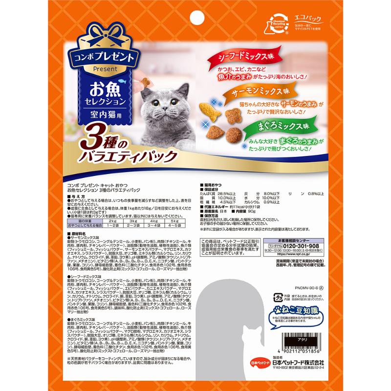 [日本ペットフード(直送)]コンボ プレゼント キャット おやつ お魚セレクション 3種のバラエティパック 90g ※メーカー直送 ※発注単位・最低発注数量(混載30ケース以上)にご注意下さい