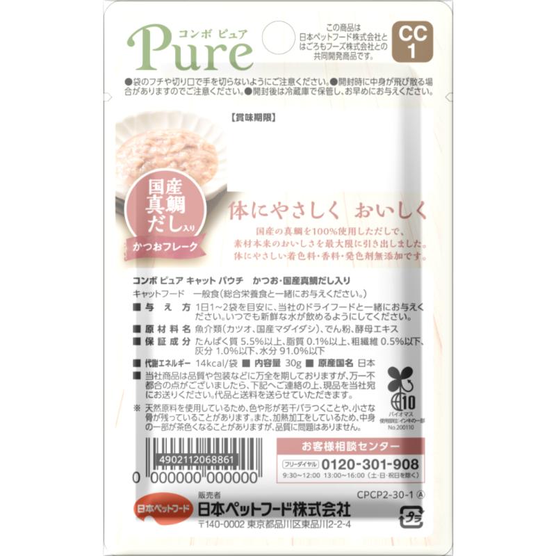 [日本ペットフード(直送)]コンボ ピュア キャット パウチ かつお・国産真鯛だし入り30g ※メーカー直送 ※発注単位・最低発注数量(混載30ケース以上)にご注意下さい
