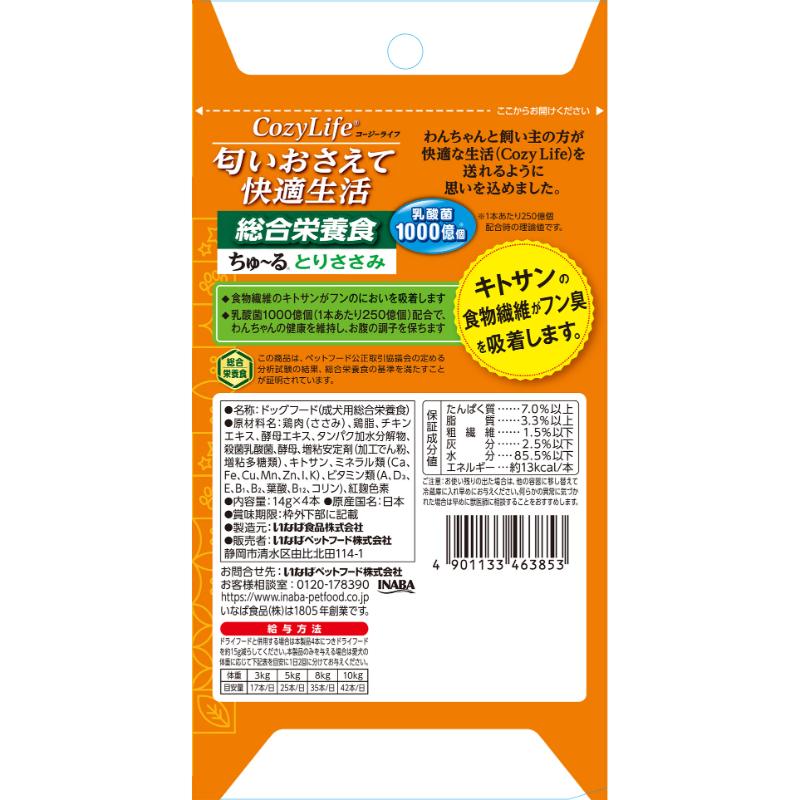[いなばペットフード(直送)]いなば CozyLifeちゅ~る 総合栄養食 とりささみ 14g×4本 ※メーカー直送 ※発注単位・最低発注数量(混載50ケース以上)にご注意下さい